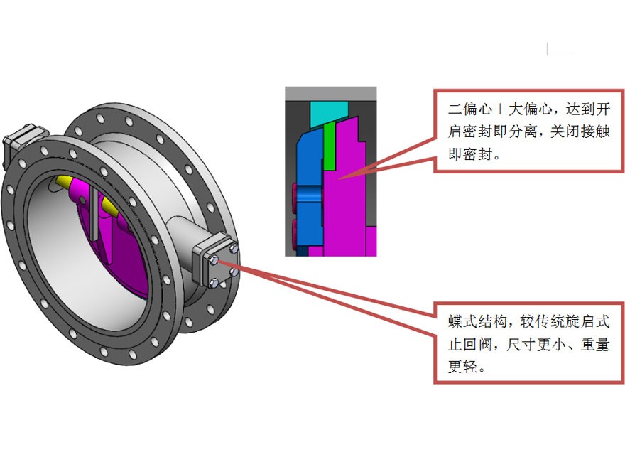 斜置蝶板:根據用戶需要,可提供斜置蝶板結構,止回時間更快。
