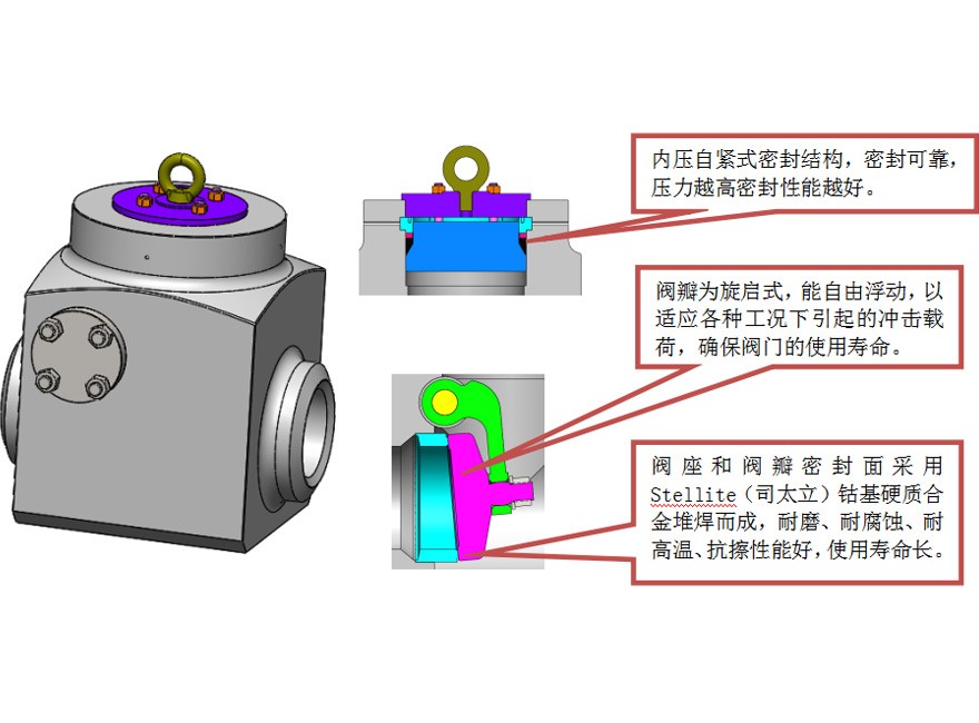 閥座和閥瓣密封面采用Stellite(司太立)鈷基硬質(zhì)合金堆焊而成,耐磨、耐腐蝕、耐高溫、抗擦性能好,使用壽命長(zhǎng);