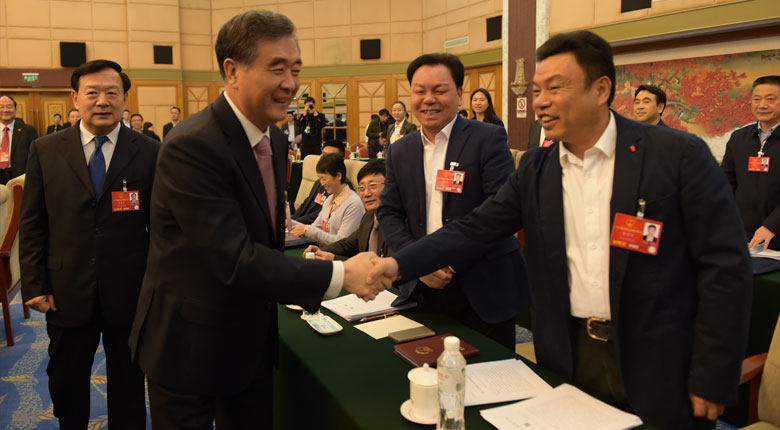 中共中央政治局常委、全國政協主席汪洋在第十二屆全國人大四次會議期間親切接見全國人大代表黃作興。