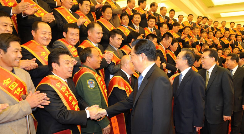 2009年11月25日, 胡錦濤、溫家寶等中央領導親切會見受表彰的全國優(yōu)秀復員退伍軍人黃作興并親切握手。
