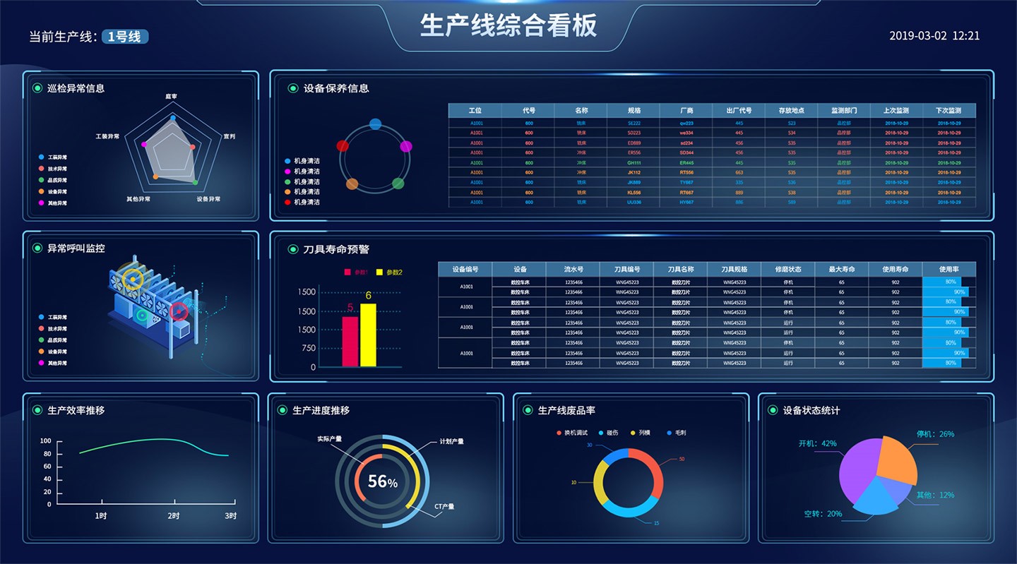 數(shù)據(jù)智能匯總,提取車間管理看板、工廠整體看板,實時更新數(shù)據(jù),提供給管理層決策分析使用。